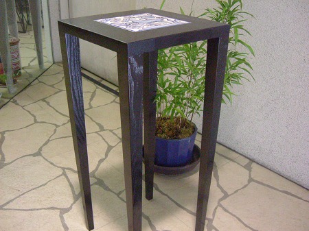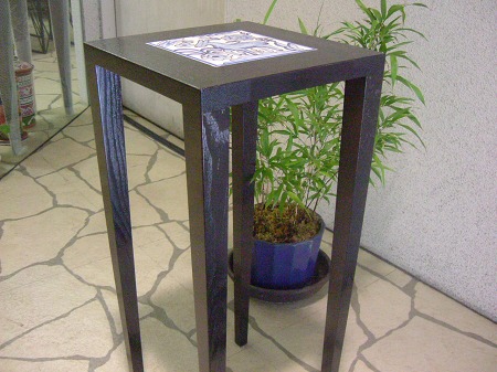 手描きのタイルと黒い枠が、すっきりとしたテーブルに仕上がっています。